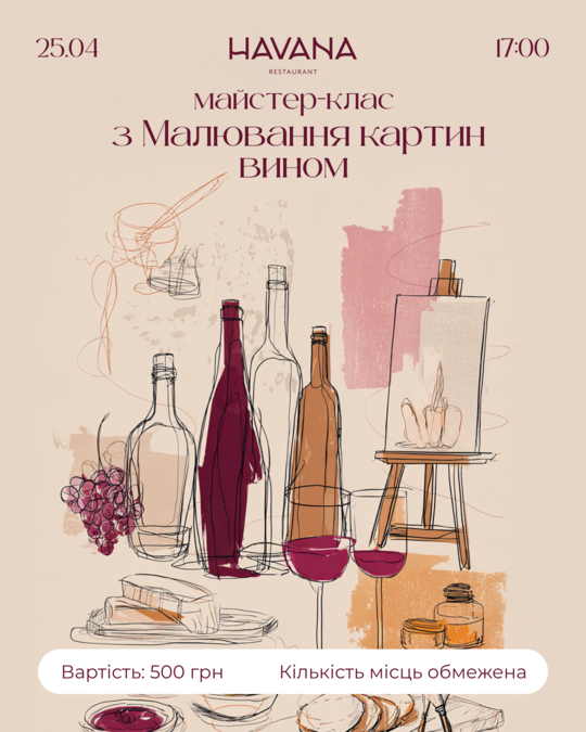 Майстер-клас з малювання картин вином Майстер-клас з малювання вином 25.04 | 17:00 Запрошуємо на атмосферний майстер-клас з малювання вином у...