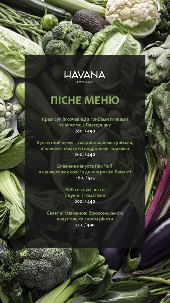 Пісне меню в ресторані Havana з 23.03 до 11.04.
